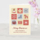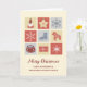 God jul för broder och hans familjekort med söta illustrationer av snöflingor, en svettare och gåvor.