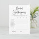 Förhöj din moderna bröllislek med vårt minimalistiska "Scattergories" spelkort, som lägger till en touch av kul till firandet. Det här klassiska svart-vit-tema-spelet uppmuntrar skratt och kreativitet när gästerna brainstormar ord inom angivna kategorier, perfekt för en sista fling innan ringen. Garanterat att bli en hit, det här spelet lägger till extra spänning till din bröllislekfirande.