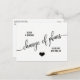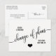 Eleganta och moderna Bröllop ÄNDRA DATUM / ÄNDRA PLANER / SKJUT UPP vykort att skicka till dina gäster. Vit script kalligrafi. Hjärtat i mitten. Anpassningsbara mallar online för enkel redigering. Lägg till din text på framsidan och baksidan av kortet. Kontakta formgivaren för specialbeställningar.