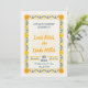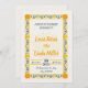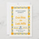 Den här bröllopsinbjudan har en beige bakgrund med en ornate gult blommigt gräns. Utformningen omfattar vibrant gula blommor i varje hörn och intrikat grönt löv som detaljerar längs gräns och skapar elegant och festligt utseende.