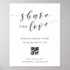Specialdesignad bröllops QR-kod skylt med "Dela Kärleken" svart-vit modern kalligrafi design.