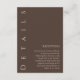 Höj bröllop med det här detaljhandelskortet, en elegant modern design. Kortet ger gästerna viktig information om mottagning och inkvartering, vilket garanterar en sömlös och snyggt firande. Anpassa den med dina bröllop-detaljer för att få en unik beröring och ange tonen för en elegant som kommer att skötas i åratal av kom.