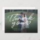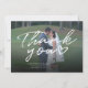 Ett underbart och tankeväckande sätt att tacka vänner, familj och medarbetare som var i bröllop eller skickade gåvor med detta moderna fototack, kort med skript med handskrivet "tack" och ett hjärta i kärlek.