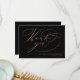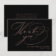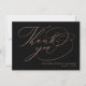 Skicka en anpassningsbar ro guld och ett svart tack till gästerna i bröllop för att tacka dem. Den här kalligrafdesignen har elegant handskriven skripttypografi i ro guld som lyder "Tack" tillsammans med ditt namn för att anpassa. Kortets baksida har ett meddelande om anpassningsbar tillsammans med din namnteckning. Designad av Susan Coffey.