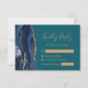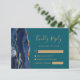 Det moderna kanten i denna elegant, som är lämnat i handen, har ett marint blått vattenfärgsagat gräns som trimmas med faux guld glitter. Rubriken "Kinly Reply" visas i handskriftsskript, med anpassade nedanför i guld-färgadens typsnitt på en tealbakgrund. Den omvända sidan har en matchande marin blå och guld-agate-design.