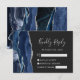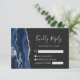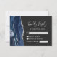 Det moderna kanten i denna elegant, som är lämnat i handen, har ett marint blått vattenfärgsagat gräns som trimmas med faux silver glitter. Rubriken "Kinely Reply" visas i handskriftsskript, med anpassade text nedan i det ljusa silver grått-färgtypstecknet på en mörk charkol-grått-bakgrund. Den omvända sidan har en matchande marin blå och silver-agate-design.