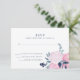 Svarskortet för snyggt och trendig bröllop har vattenfärg som ser ut för rosa och marin blåa blommor och löv. Vi har använt konst från LABF-skapelser.