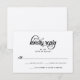 Prisvärda responskort från personligt bröllp med en modern, strålande typografisk layout tryckt på riktiga kraftkardstock eller den papper du väljer. Anpassa mallen med dina bröllop OSA eller använda verktygen för designen för att anpassa texten, välja valfritt färg och redigera typsnitt för att skapa din egen unika design. På motsatt sida finns det utrymme för att vid behov lägga till ytterligare text eller foton.