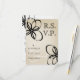 Bröllop OSA-kort (Knubbig Affärskort) med svartvitt och brunt färg. Svartblommeillustrationer överst till lämnad och höger i grund. Svart text. Matchande inbjudningar på Jill's Paperie.