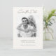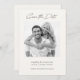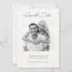 Meddela din förlovning och det kommande bröllop med det här enkla, moderna och minimalistiska svartvita fotot Spara datum. Ditt foto passar utmärkt på framsidan av det här vita papperet. Ett svartvit filter för anpassadet läggs till för att desaturera ett foto. Anpassa genom att lägga till namn, datum och plats för bröllop.