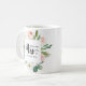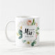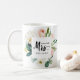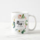 Före bröllop, visa ditt framtida nya efternamn med detta roliga framtida MRS. Typografi MUGG med en blommigt ram av rosor och barrträd, samordnad till modern bröllop samling och tillbehör.