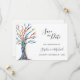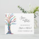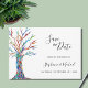 Detta unika bröllopskort för att spara datumet är dekorerat med ett färgrikt mosaikträd.