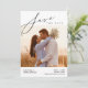 Spara vår datum. Detta moderna manus, det glada paret foto Spara datum-kort, är perfekt för din bröllopsfirande tillkännagivande av din speciella dag. Denna spara datum-inbjudan har ett foto, och du kan enkelt ändra din bröllops spara datum tillkännagivande detaljer. Detta kort finns också tillgängligt i digital nedladdningsbar version.