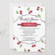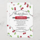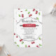 Modern bröllopsduschinbjudan till köket med en röd kavl medföljer i en fin ram med vit bakgrund. Bakgrundsmönstret har knippen av körsbär. Besök vår butik för att se denna moderna, stilrena och chic bröllopsinbjudan till köket i en mängd olika färgalternativ.