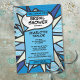 En rolig, cool och trendig seriealbum-inspirerad bröllopsinbjudan som sätter wam, zap, pow i vilken superhjältebruds som helst firande evenemang. Baksidan har ett matchande seriealbum-blått prickmönster. Designad av Thisisnotme