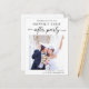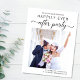 Modern spara-datum-postkort för din efterbröllopsfest eller privata bröllopsmottagning med ditt foto, "Spara Datum För Vår Lyckliga Efterfest" i en blandning av enkel typografi och ett trendigt manus med svängar och dina förnamn och mottagningsdatum och plats. På baksidan kan du ge fler detaljer och lägga till dina namn i ett signaturliknande manus.