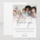 Modern Bröllopsfest Överlägg Tack. En informell uppsättning typografi i svart för den huvudsakliga rubriken Tack som kompletterar resten av texten som du enkelt kan anpassa. Ersätt provfotot med ditt eget favorit från tillfället.