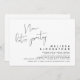 Det här är bröllopsinbjudningskortet för bröllopsflykt, med minimalism / minimalistisk svart skriftdesign (Nu ska vi festa Inbjudan)