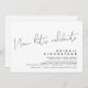 Detta är bröllopsflyktens partajinvitationskort, med minimalism / minimalistisk svart skriptdesign (Nu låt oss fira).