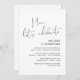 Det här är bröllopsflyktens festinladningskort, med minimalistisk / minimalistisk skriptdesign (Nu ska vi fira)
