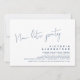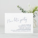 Det här är bröllopsflyktens festinbjudningskort, med minimalism / minimalistisk Navy Blue scriptdesign (Nu låter vi party Inbjudan)