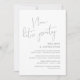 Detta är bröllopsflykt-festens inbjudningskort, med minimalism / minimalistisk mörkgrå script-design (Nu ska vi festa)