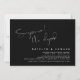 Meddela och dela er lyckliga framtid med stil med vår moderna temadesign (Överraskning! Vi rymde) bröllopsinbjudan i svart och vitt. Den är idealisk för par som har beslutat att fira sin stora dag. Med sin sofistikerade men lekfulla design kommer denna inbjudan säkert att sätta tonen för en oförglömlig fest. Inbjudningskortet har ett modernt och minimalistiskt typsnitts tema som lägger till en touch av tidlös elegans till er fest. Designad av TeeshaDerrick