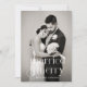 Modern julkort för nygifta har ett favoritfoto på framsidan med texten gift och glad i modern vit typografi.