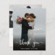 tackkort för bröllopbröllostackmodern elegant handstiltrendig handskriven kalligrafichic typografirustik handskriftsnygg typografivit handskriven texttvå foto bröllop tackbrud och brudgum tack