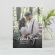 Ett bra och genomtänkt sätt att tacka dina vänner, familj och kollegor som hedrade dig med sin närvaro på din bröllpsdag med dessa moderna fototackkort med handskrivna "tack" i typsnitt och ett kärlekshjärta.
