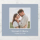 Dessa vackra moderna bröllopsfoto etiketter för flaskor med en dammig blå kant är perfekta för att fästa på alla ölfavoriter på förlovningsfesten, brudens shower, bröllopsmiddagen eller bröllopsfesten. Välj ett foto du gillar som speglar er kärlek till varandra. Anpassa dem med ert foto, namn och datum. Dessa anpassade etiketter för flaskor gör att ge en sixpack öl till gästerna som en souvenir blir unik och rolig.