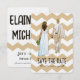 En enkel, modern design för att spara datum. Framsidan har en illustration av en brud och en brudgum som går hand i hand tillsammans med "spara datum"-meddelandet. Baksidan av designen följer färgtemat brunt och vitt. Den har brudens och brudgummens namn i stora, feta bokstäver högst upp. Och längst ner följer datum och platsinformation.