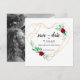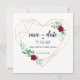 Grattis! Spara datumet är det första steget i att sätta tonen för ditt bröllop. Imponera på dina gäster med detta moderna spara-datum-kort med geometriskt hjärta och röda rosor. Baksidan av kortet anpassas med ditt favoritfoto av dig och din fästman.