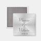 En anpassningsbar design för ett trendigt, modernt bröllop. Denna design har en borstad metallbakgrund med brudens och brudgummens namn och bröllopsdatum.