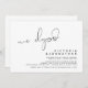 Det här är bröllopslöftets festinbjudningskort, med minimalism / minimalistisk svart skriftdesign (Överraskning, vi rymde)