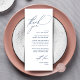 Dela kärleken och visa din uppskattning för dina gäster när de sätter sig på sin plats och läser detta personliga charmiga tack-kort i klassiskt marinblått tema. Det är ett underbart sätt att kicka igång firandet av din speciella dag! Detta kort kommer säkert att sätta tonen för en oförglömlig händelse. Tackkortet har ett modernt designskript-tema som ger en touch av tidlös elegans till din fest. Designad av TeeshaDerrick