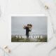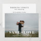 Anpassad bröllopsneddragnings-kort med "samma kärlek, mindre bröllop" modern typsnittsdesign på personligt bröllopsfoto.