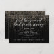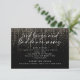 Bröllopsmottagning | Modern Abstrakt Bröllopsfest Efter Fest - Fet, kantig champagne på svart gnistrande krans faller nedför sidan, i handskriven kalligrafi står "mat sprit och dåliga dansrörelser" - resten av texten är enkel och ren - allt på svart bakgrund. Casual Roligt Kantigt bröllopspapper.