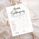 Förhöj din moderna bröllopsfest med vårt minimalistiska "Scattergories" spelkort, som lägger till en touch av kul till firandet. Det här klassiska svart-vit-tema spelet uppmuntrar skratt och kreativitet när gästerna brainstormar ord inom angivna kategorier, perfekt för en sista fling innan ringen. Garanterat att bli en hit, det här spelet lägger till extra spänning till din bröllopsfest.