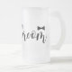 Denna moderna design Team Groom med fluga ser bra ut på denna frostade mugg. Om du önskar kan du anpassa muggen med det speciella datumet. Design av Inge Lewis. Perfekta presenter för svensexor eller bröllopsfester. Hitta fler matchande föremål på ingeinc.com onlinebutik.