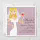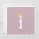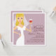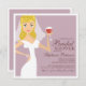 En söt blond brud med blåa ögon skålar med familj och vänner med ett glas vin i denna moderna tolkning av en bröllopsfest inbjudan. Populär lila bakgrund. Perfekt för en vin-tematisk fest eller för en vinälskande brud. Även tillgänglig: