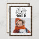 Modern Brun Buffalo-Roligt Skriptkort för enkel Helgdag. Skicka helgdag varmt önskemål och hälsning till dina kära med det här enkla, minimalistiska, söta och vackra fotokortet med helgdag "Joy to the World" i snyggt typografi. Vänd om du vill visa en vacker mörk brun check mönster bakgrund. Önska er alla God jul och Gott nytt år!