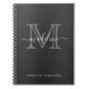 Modern Brshed Metall Black Grått-skript Monogram Anteckningsbok
