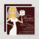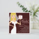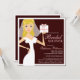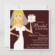 En nätt blond blåögd brud rymmer en bröllopgåva bunden med en rosa pilbåge i denna moderna take på en inbjudningskort för möhippan.
