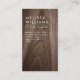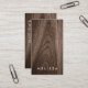 Lodrät affärskort med namn tryckta i vitt på en tryckt brun kornbakgrund på framsidan och namn, titel och kontaktinformation på baksidan.