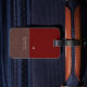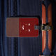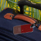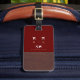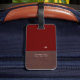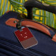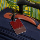 Modern brun/röd resresemagg med Namn Bagagebricka