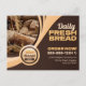 Letar du efter ett sätt att marknadsföra ditt bageris utsökta bröd? Denna iögonfallande postkortsmall är svaret! Den varma designen med bilder på nybakat bröd får omedelbart saliven att rinna och lockar in kunder. Anpassa med lätthet – lägg till ditt bageris varumärke, kontaktinformation och en frestande lista över dina brödsorter. Perfekt för att framhäva dagliga specialerbjudanden, nya kreationer eller ditt engagemang för kvalitetsingredienser! Börja redigera nu och låt framgångens doft fylla ditt bageri.