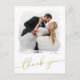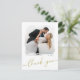 Modern Brush Photo Gold Script Wedding Thank You Vykort