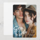 Modern Brush Script Foto Bröllop Spara Datum Inbjudan