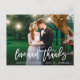 Modern Brush Script Bröllopsfoto Kärlek och Tack Postkort